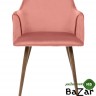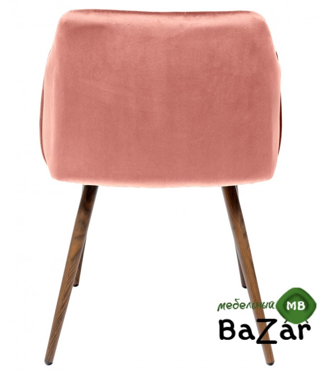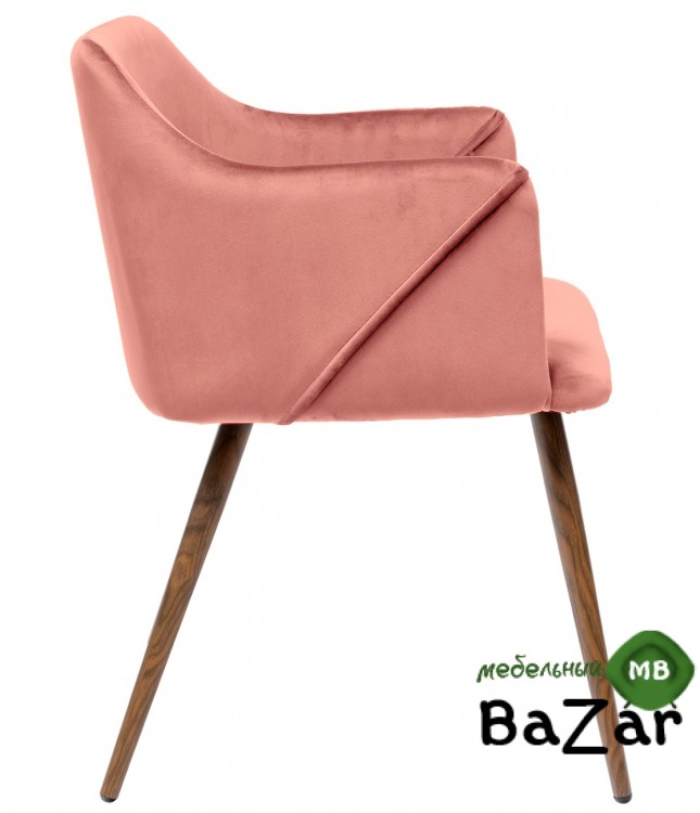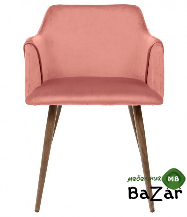 Стильный и мягкий стул розового цвета имеет широкую эргономичную спинку и удобные подлокотники. Обивкой послужила высококачественная плотная ткань. Ножки стальные с принтом по дерево.