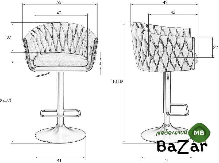 Барный стул 9690-LM LEON от китайской фабрики, в стиле лофт. Материалы изготовления: металл, текстиль. Габариты: длина – 41 см, ширина – 55 см, высота – 89 - 110 см, глубина – 49 см. Максимальная нагрузка – 100 кг.