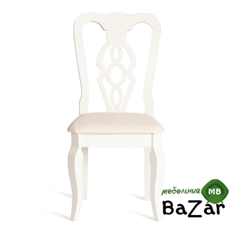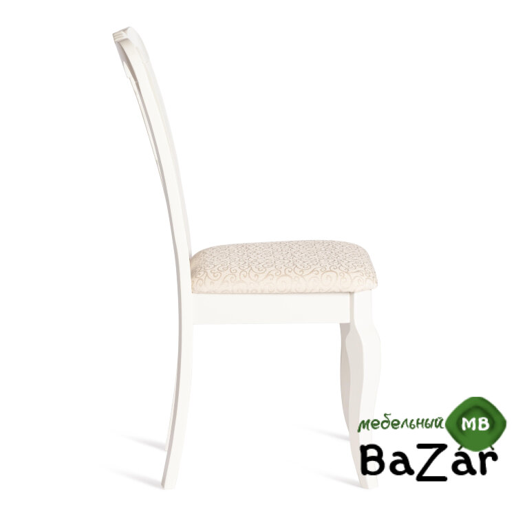 Стул - Афродита/ Aphrodite дерево гевея Ivory white, ткань кремовая с рисунком (А04)