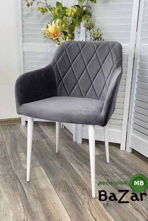 Стул BRANDY-X СЕРЫЙ #27 / белый каркас, велюр