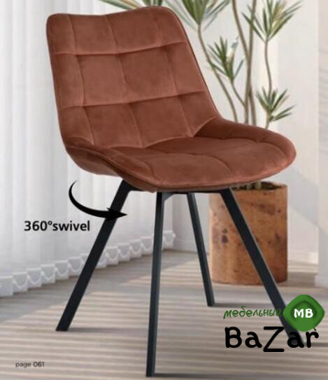 Стул CORN 360 град. поворот. G062-10 шоколадный, велюр/ черный каркас
