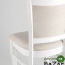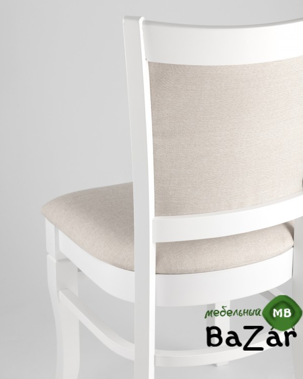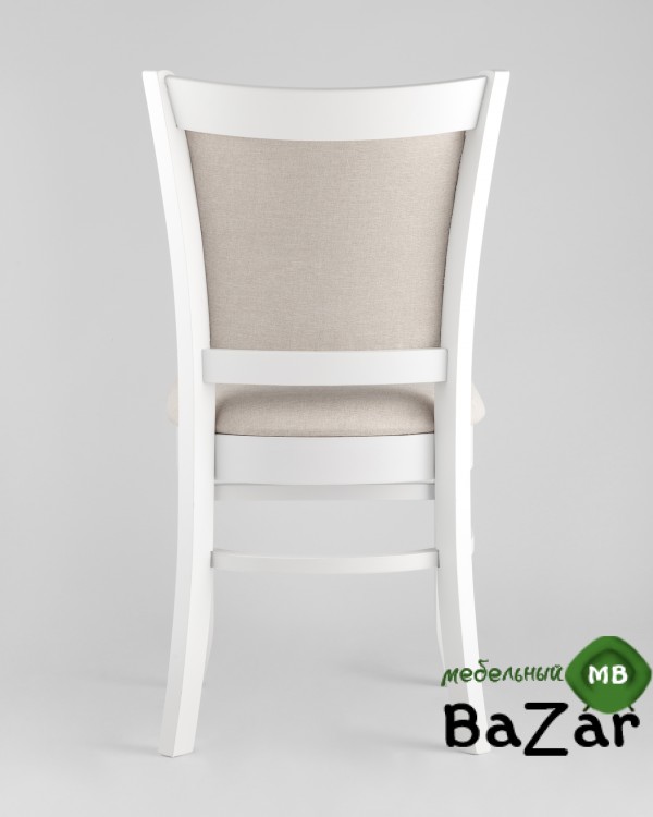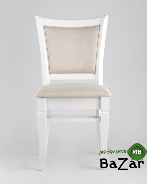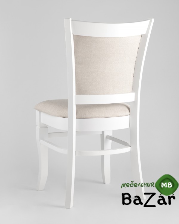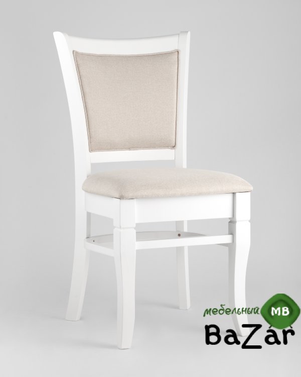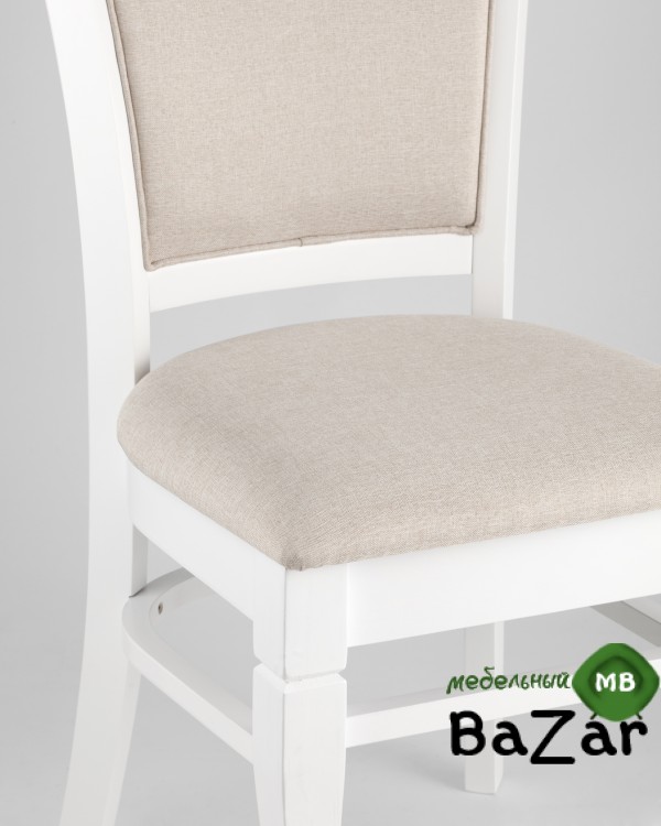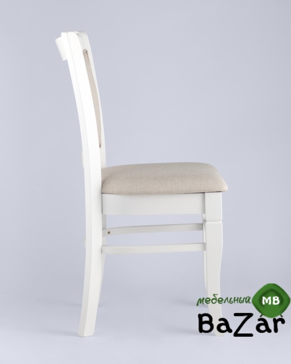 Стул с мягким сиденьем и спинкой, обивка выполнена из рогожки. Белый каркас - массив гевеи. Аккуратные ножки красиво подогнуты и обеспечивают устойчивость конструкции.